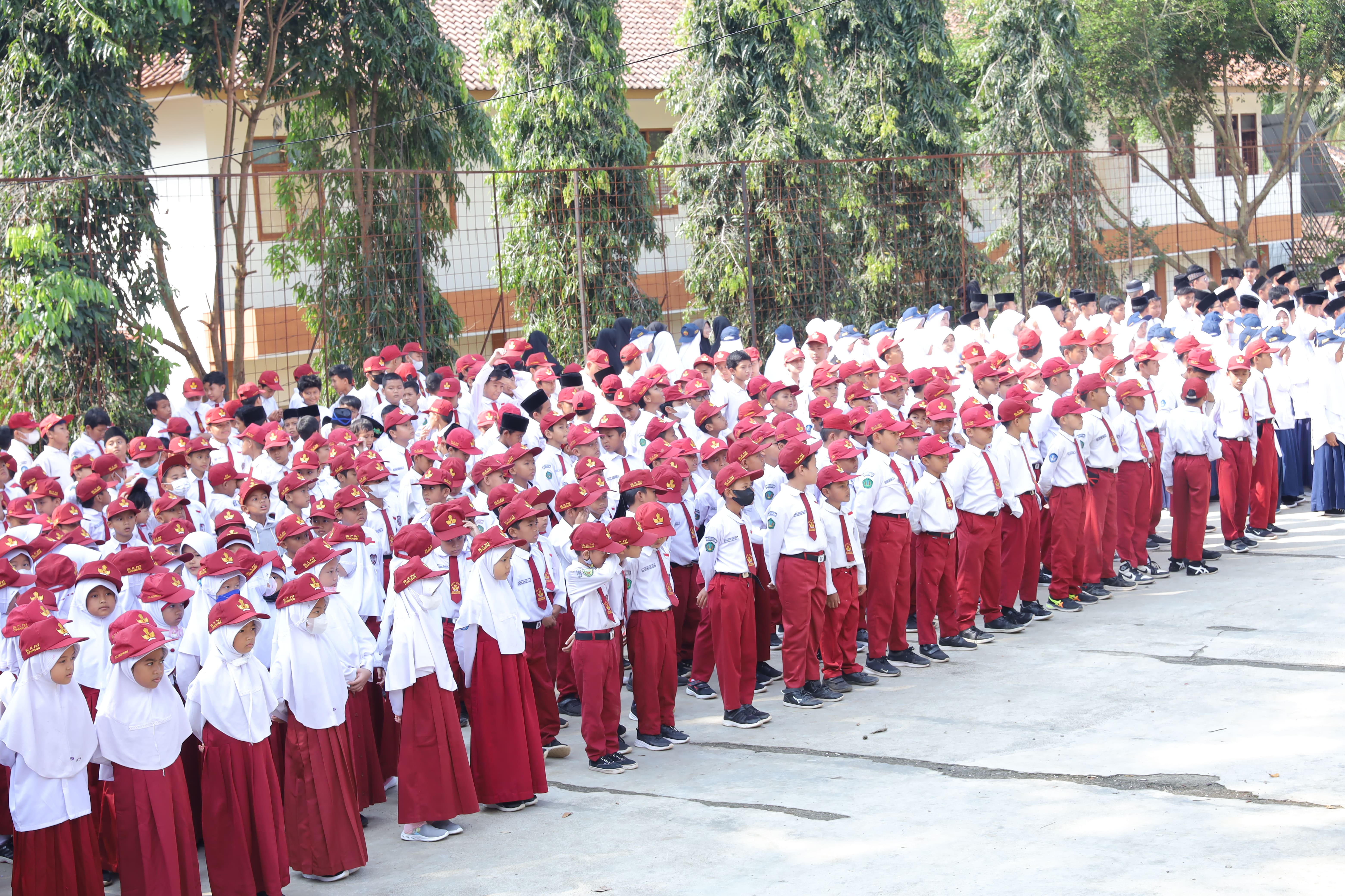 Rutinitas apel pagi santri jenjang SDIT, SMPIT dan SMAQURAN untuk menanamkan nilai-nilai kepemimpinan dan kerapihan sebelum memulai proses belajar mengajar di kelas